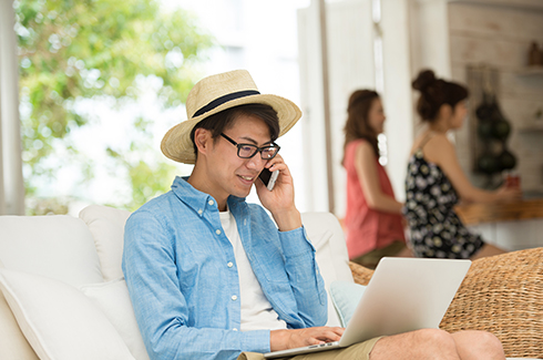 リゾートでくつろぎながらテレワーク。お部屋にはWi-Fiを完備。テレワーク用のレンタルも充実させておりますので、フェリスヴィラスイートをプライベートオフィスとしてご利用ください。