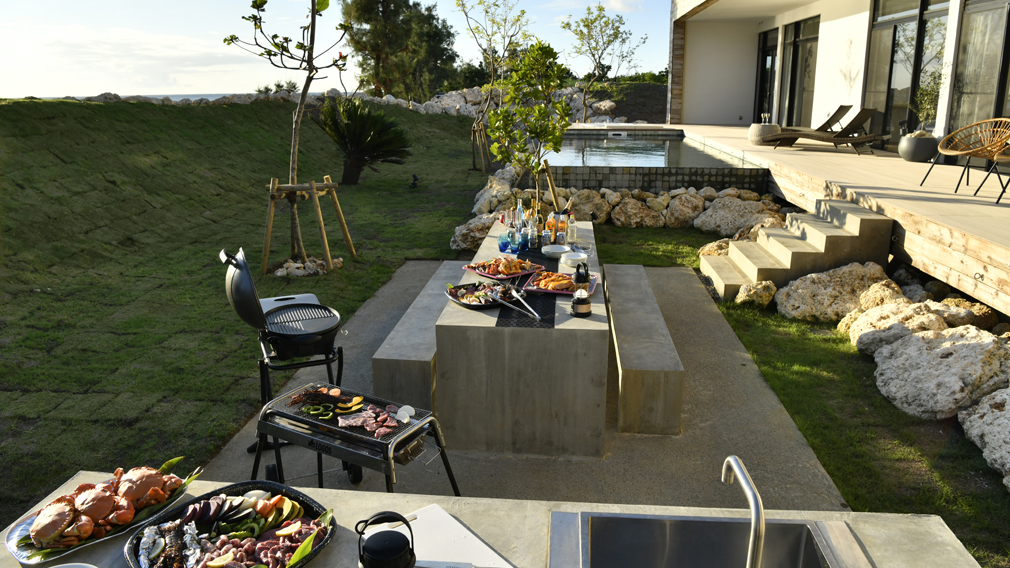 シンクと調理台をご用意した専用のバーベキューコーナー。