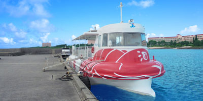 離島唯一の半潜水式水中観光船は、隣接する博愛漁港から出航しています。