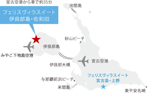 当ホテルへは、宮古空港からレンタカーやタクシー等、車をご利用ください。