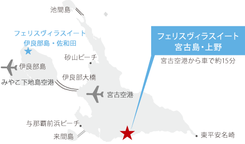 当ホテルへは、宮古空港からレンタカーやタクシー等、車をご利用ください。