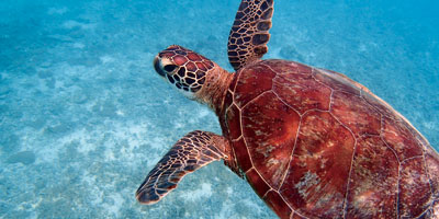 シュノーケルなどで、ウミガメとの出会いをお楽しみください。